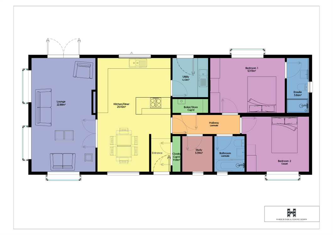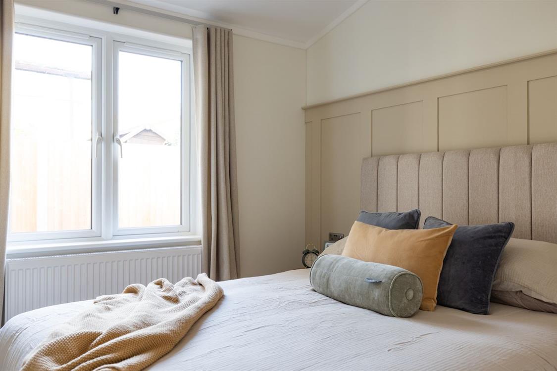 This home offers two generous double bedrooms, thoughtfully designed for both comfort and storage. The luxurious master suite boasts a walk-through dressing area, fully fitted wardrobes, and a sleek en-suite shower room. The second bedroom also includes ample built-in storage, perfect for family or guests.